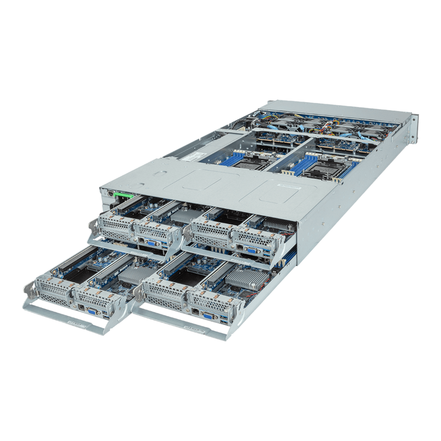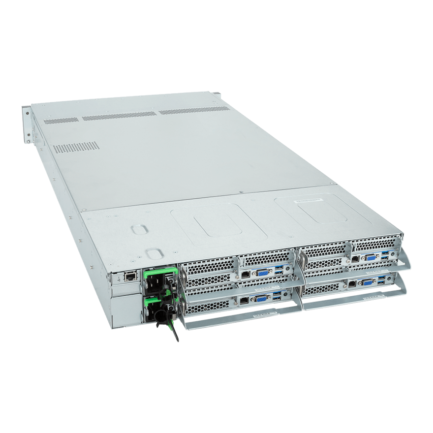 2U四節點服務器適用于傳統數據中心前后氣流散熱設計和標準19英寸工業機柜。