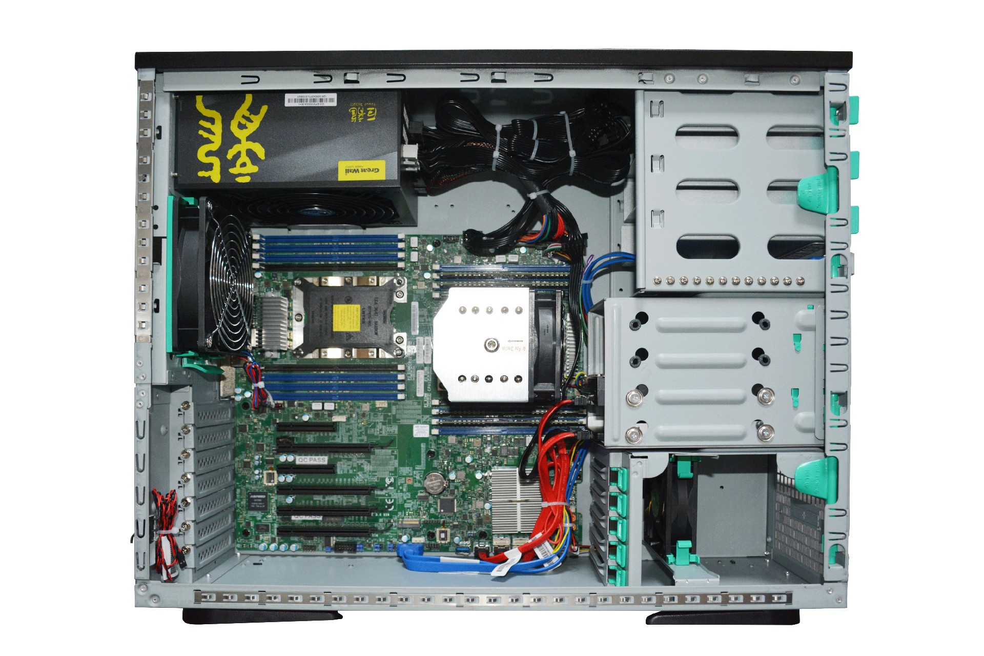 主板提供8個SATA3接口,機器標準最大支持四個SATA非熱插硬盤,可選四位熱插拔模組,可選外接SAS擴展卡支持SAS硬盤。